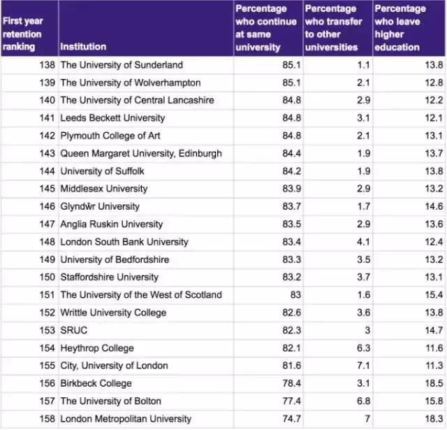 桑德兰大学,伦敦城市大学等名校的升学率赫然在列。