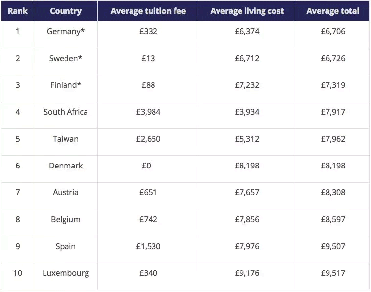 出国留学费用一直都是各位学子和家长们关注的重点,而不同国家的留学费用会出现很大差别,在TIMES联合FAIRFX(旅行货币兑换公司)统计了全球各国的留学费用开销(最新榜单)中,美国留学果不其然,成为世界留学国家中最贵的;德国以其公立大学免学费等政策,成为全球留学费用最低、最便宜的国家。