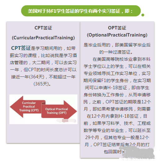 美国大学毕业后留学美国是好多留学美国毕业生的选择之一,那么美国留学毕业后如何合法留在美国呢?去美国留学的学生,最关心的问题是毕业后如何找工作,一旦找不到合适的工作,可以在美国合法滞留多长时间呢?这就需要童鞋们分清美国留学实习签证CPT和OPT。