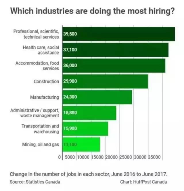 这是加拿大各专业职位分析,在各行业中,一年以来增长最快的行业是STEM,共增加工作职位39500个,比一年前增4.6%,大大高于全行业1.8%的平均增长率。