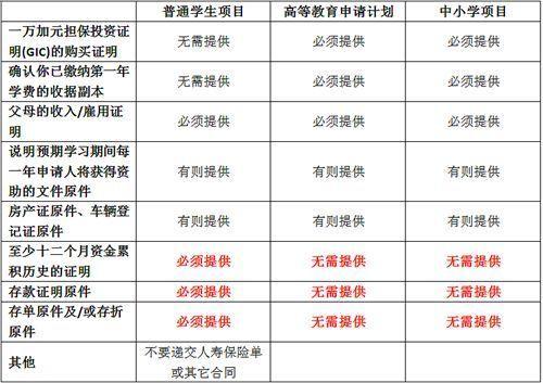 加拿大各类签证申请材料对比参考表单: