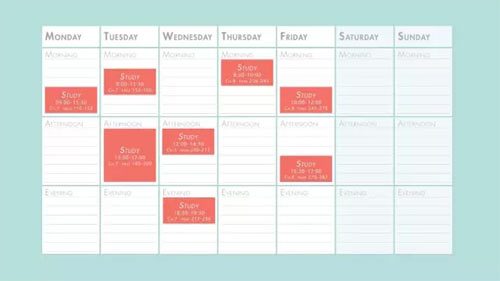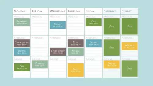 第一步,先把日程表中已经确定的时间写进计划,可以既包括学习,也包括事先约好的社交活动、锻炼项目和休息时间。