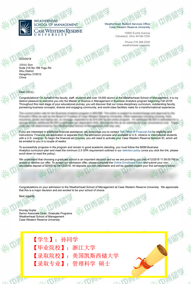 【录取院校】:美国凯斯西储大学