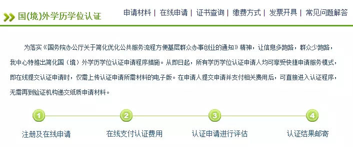 注:自2014年起,认证结果由教育部留学服务中心直接EMS特快专递邮寄给认证申请者。特别提醒认证申请者,必须在认证申请系统中正确填写收件人姓名、地址、电话等,以免出现认证结果无法按时寄达的问题。认证申请网上提交后,邮寄地址将不能更改。