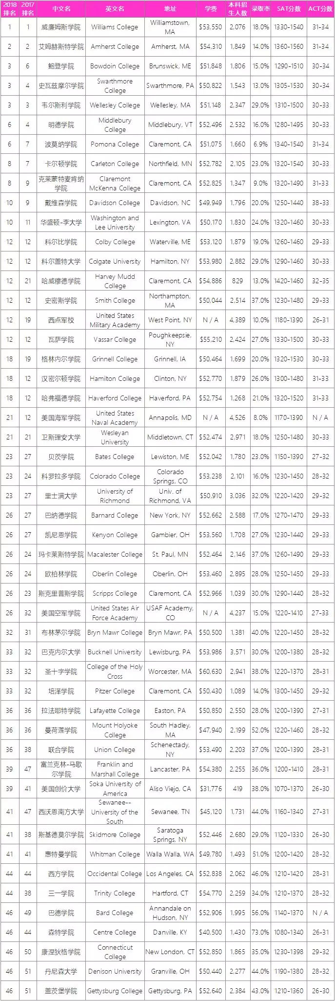 很多学生关心,在今年的USNews排名中,以注重本科教育,尤其是本科通识教育闻名的全美175所文理学院,TOP50排名与2017年有多少变化?TOP50文理学院是否又像你想的那样,录取率很低,且SAT、ACT分数很高呢?对比文理学院与综合性大学排名,应该怎么选择呢?