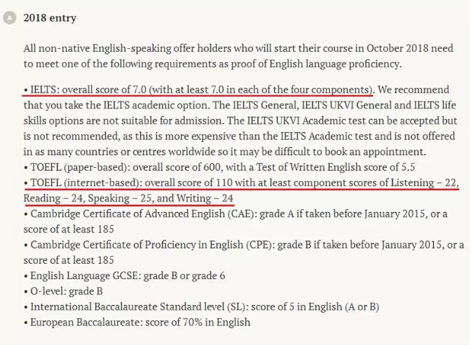 虽然牛津新增的higher level托福要求跟剑桥有细微差别,也就是单项不太一样,但总体都要求申请者达到110分。