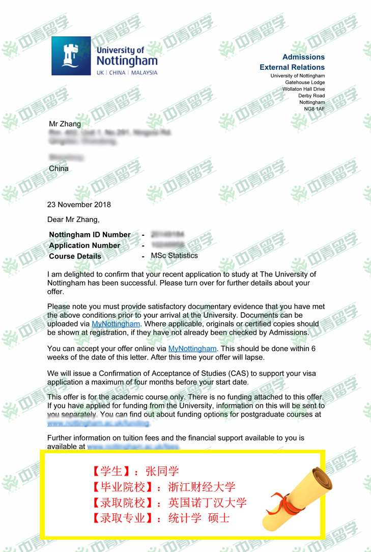 【录取院校】:英国诺丁汉大学