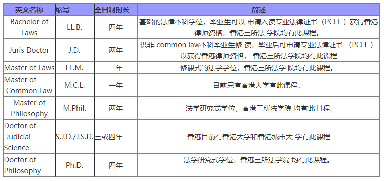 1、香港三所法律学院的法学本科学士(LL.B.)或法律博士(J.D.);