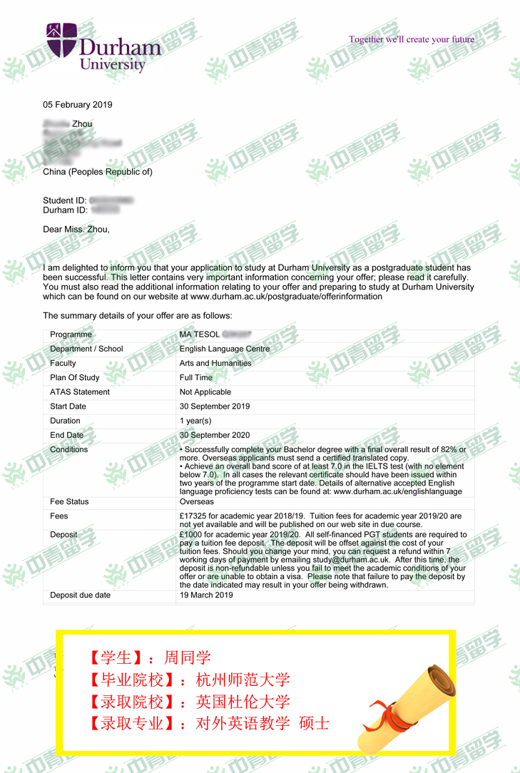 【录取院校】:英国杜伦大学