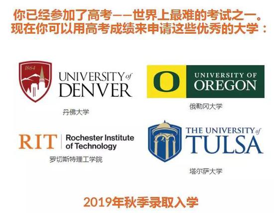 2019年高考已经落下帷幕,今年参加高考的考生已经突破千万。除了参与国内高校的角逐,有眼光的家庭还会把目光聚焦在留学方面。随着留学风潮兴起,越来越多的美国高校开始认可中国高考成绩,近日,美国大学又传来好消息。2019年,又有四所美国大学宣布将接受高考分数。这四所学校是:俄勒冈大学、塔尔萨大学和罗切斯特理工学院、丹佛大学。今天就来盘点几所接受中国高考成绩的美国院校~