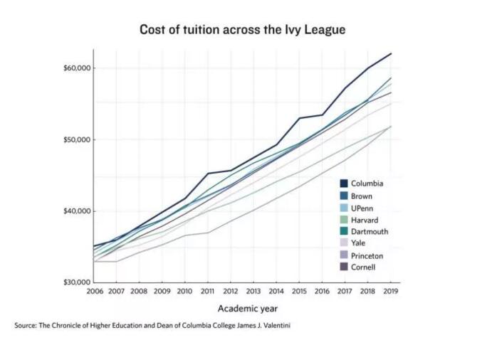 没有被芝大统计在内的哥伦比亚大学本科生院的院长James Valentini早已官宣:今年哥大的基础学费逼近62000美金一年,是目前为止美国TOP30学校中基础学费最贵的学校。