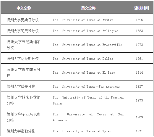 德克萨斯大学系统,又称德州大学系统,是位于美国德克萨斯州的著名公立大学系统,成立于1876年,包括9所大学。德州大学奥斯汀分校为该系统的旗舰校区,成立于1883年,是该系统下成立时间最早,也是最为知名的大学,是美国著名的“公立常春藤”之一。