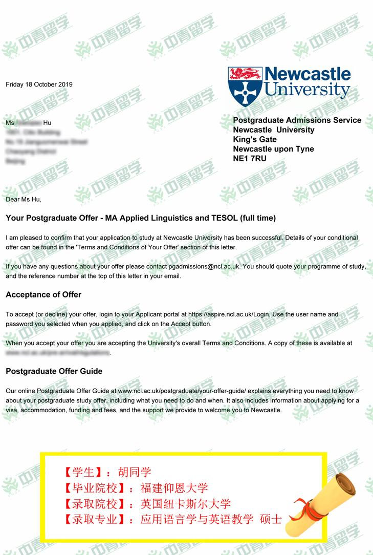 【录取院校】:英国纽卡斯尔大学