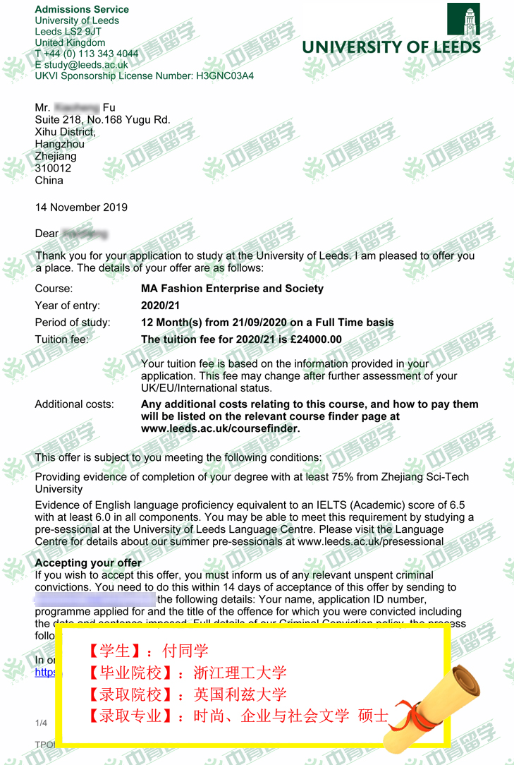 【录取院校】:英国利兹大学