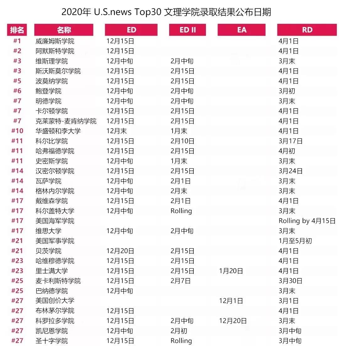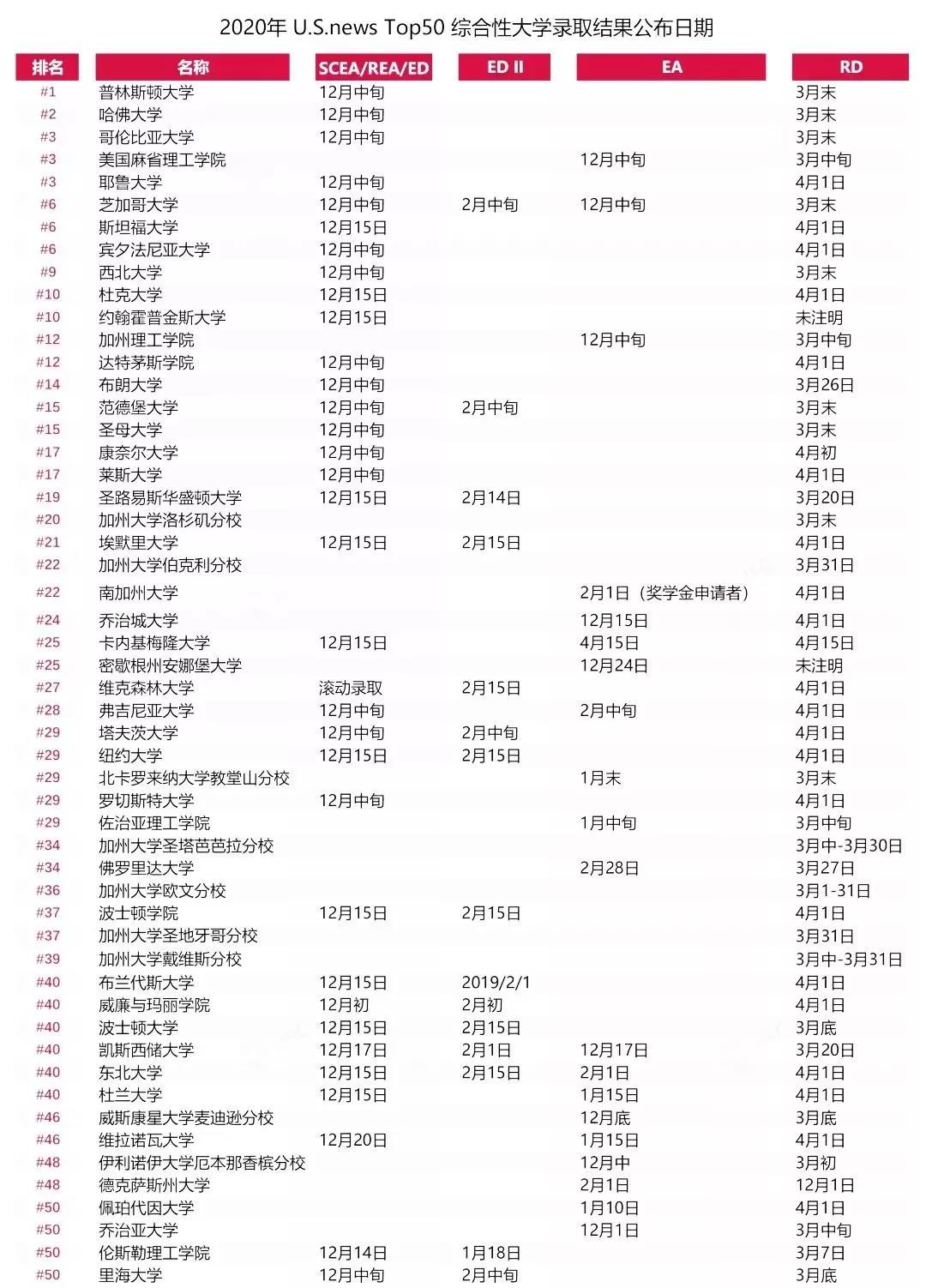 12月是美国大学早申请(EA/ED)的放榜时间,一般从12月10日开始,大部分学校陆续放榜。新姐汇总了2020年TOP50大学的放榜日期为大家参考~