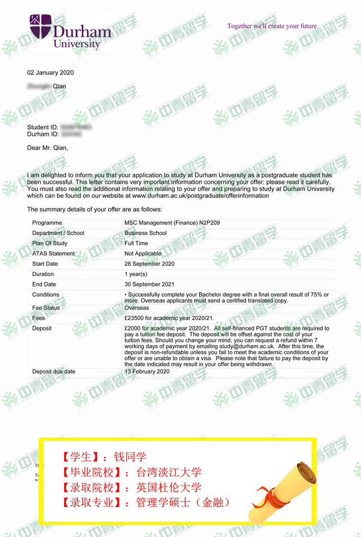 【录取院校】:英国杜伦大学