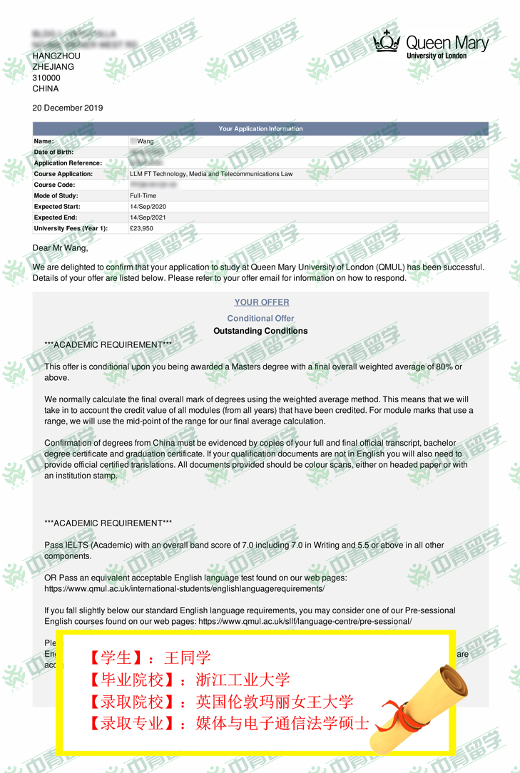 【录取院校】:英国伦敦玛丽女王大学