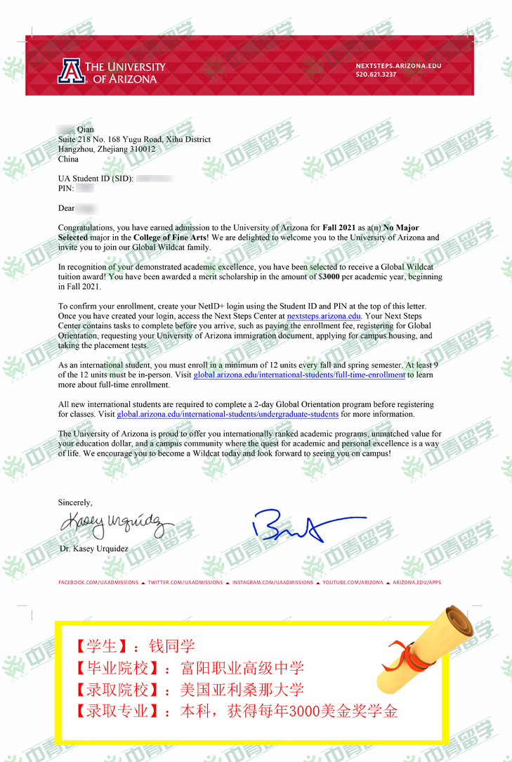 【录取院校】:美国亚利桑那大学