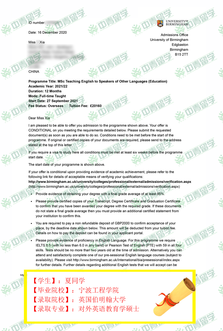 【录取院校】:英国伯明翰大学