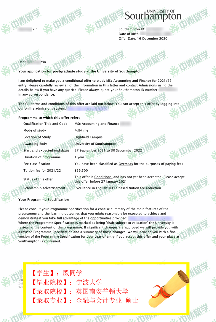 【录取院校】:英国南安普顿大学