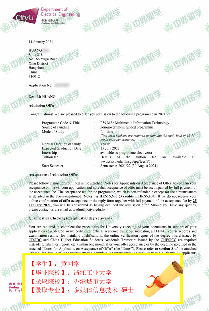 【录取院校】:香港城市大学
