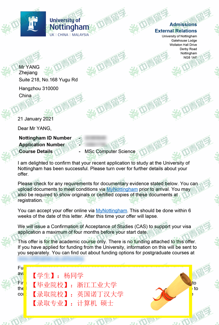 【录取院校】:英国诺丁汉大学