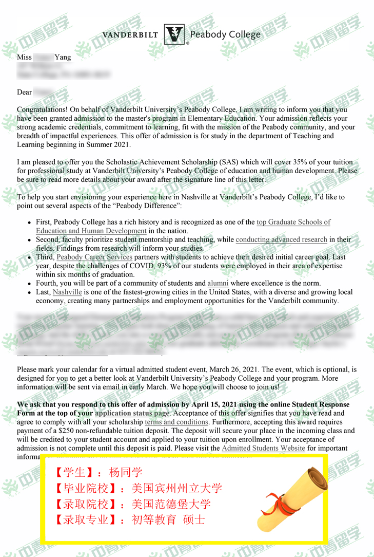 【录取院校】:美国范德堡大学