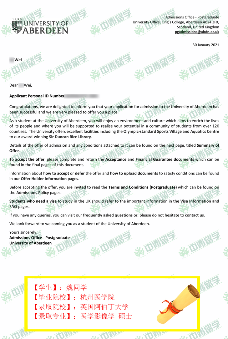 【录取院校】:英国阿伯丁大学