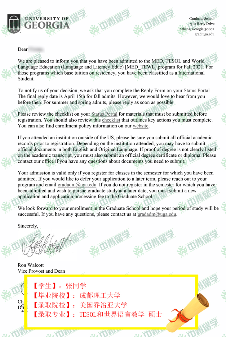 【录取院校】:美国乔治亚大学