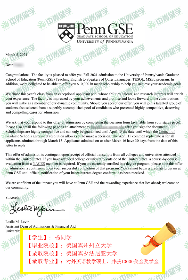 【录取院校】:美国宾夕法尼亚大学