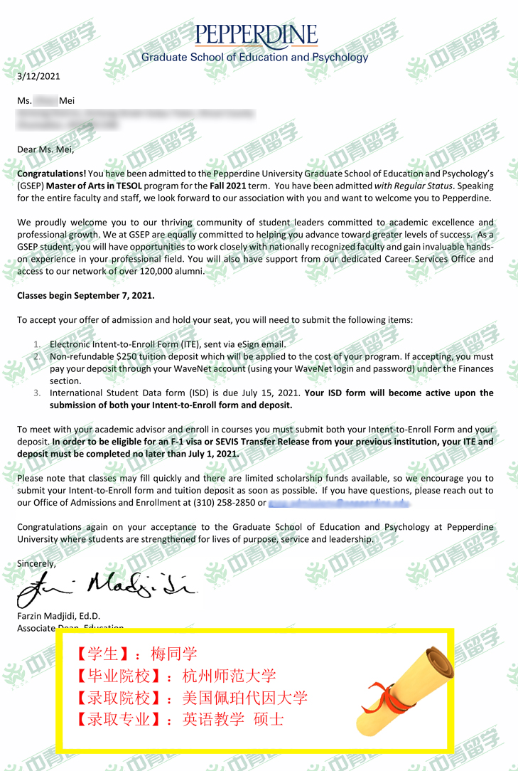 【录取院校】:美国佩伯代因大学