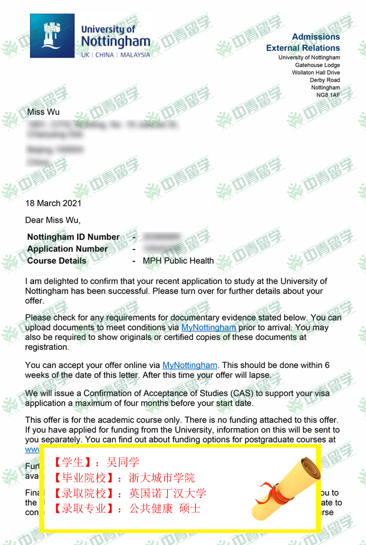 【录取院校】:英国诺丁汉大学