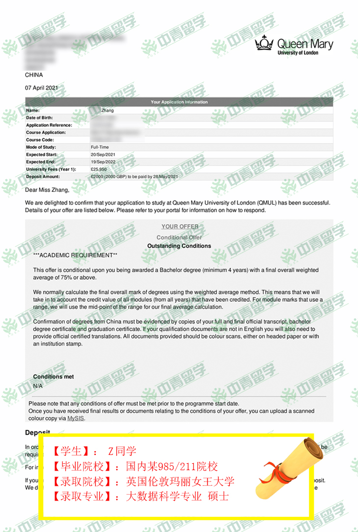【录取院校】:英国伦敦玛丽女王大学