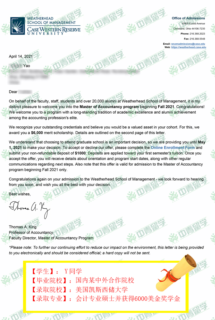 【录取院校】:美国凯斯西储大学