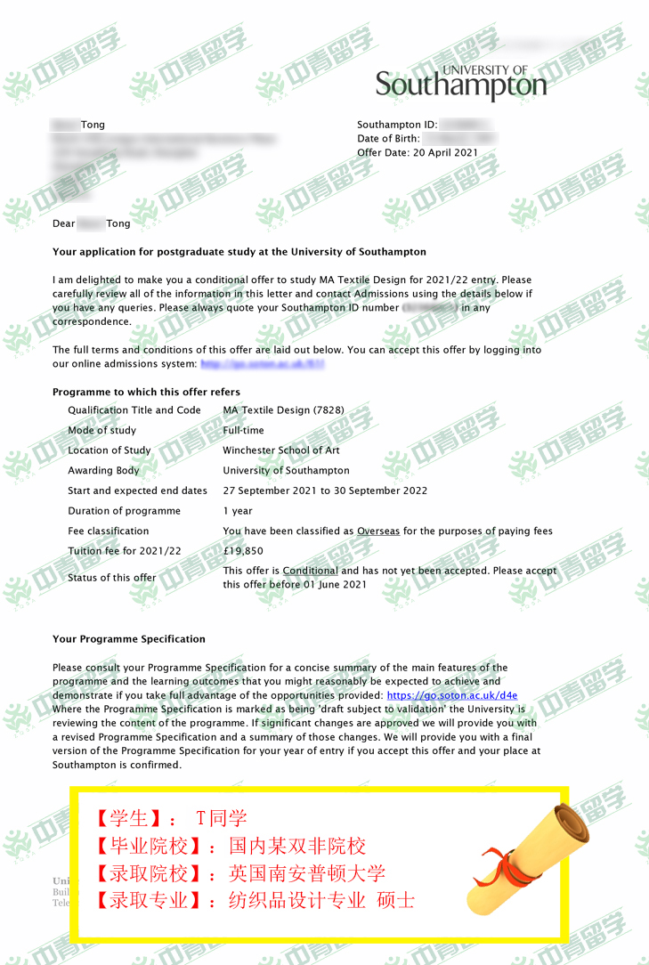 【录取院校】:英国南安普顿大学