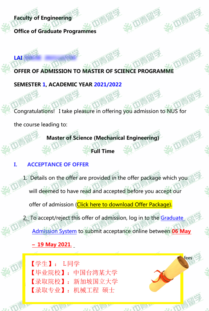 【录取院校】:新加坡国立大学