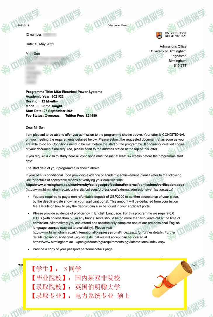 【录取院校】:英国伯明翰大学