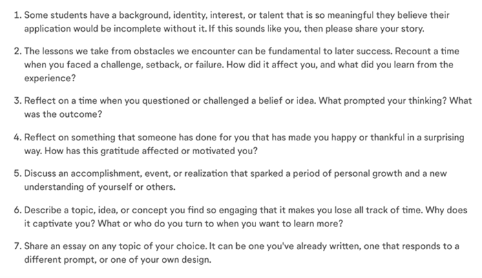 经历过申请季的小伙伴都非常能感同身受CA的主文书至关重要(简直是又爱又恨),提前了解和未雨绸缪,十分+严重+非常具有必要性!而且今年新换的题目小编也觉得挺有意思的,大家可以提前试试是否有你自己的故事,说不定今年的文书可以让人耳目一新。