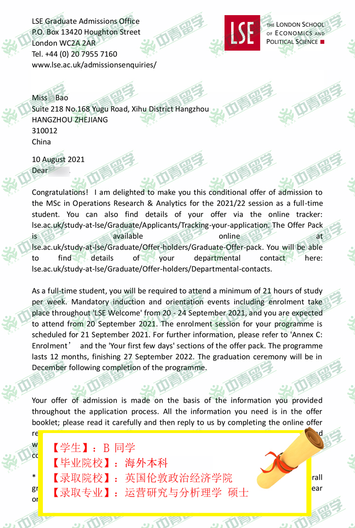 【录取院校】:英国伦敦政治经济学院
