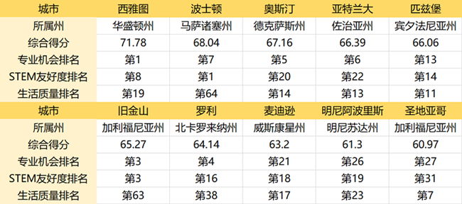 如果你想赴美留学,同时希望选择STEM专业优秀的学校,那么在这10座城市以及周边的学校都可以作为你的择校参考。