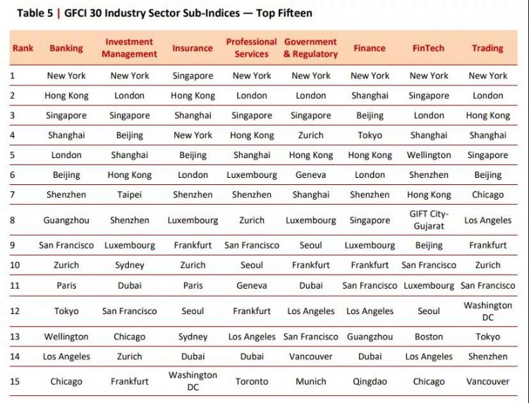 GFCI 30续以营商环境、人力资本、基建、金融行业发展、声誉5大方面评分,纽约在全数5个分类评分排名第一,香港在人力资本、基建和声誉排名第4,为较佳的分项表现,在营商环境和金融行业发展分类,香港分别排第7、5位。