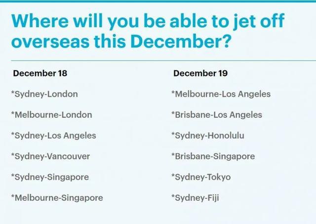 除此之外,从12月19日起,澳人将能飞往一些亚洲地区包括东京和斐济。