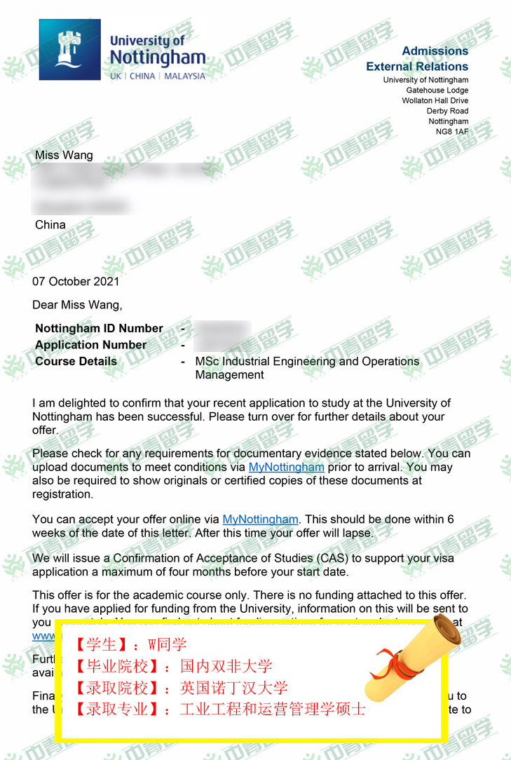 【录取院校】:英国诺丁汉大学