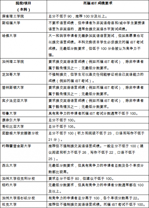 ●学生的托福iBT成绩满足所申请院校的分数要求。