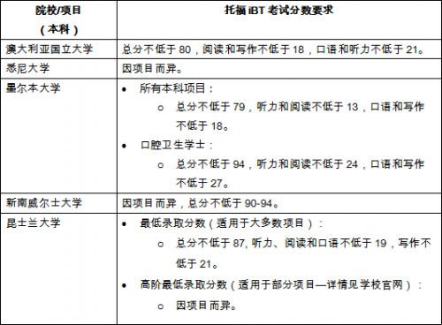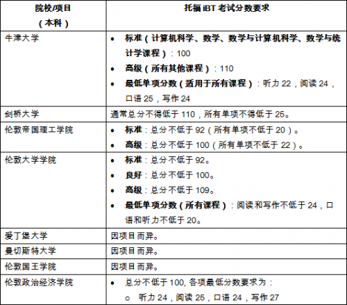 以下是一些英国院校对申请本科的托福iBT成绩要求。