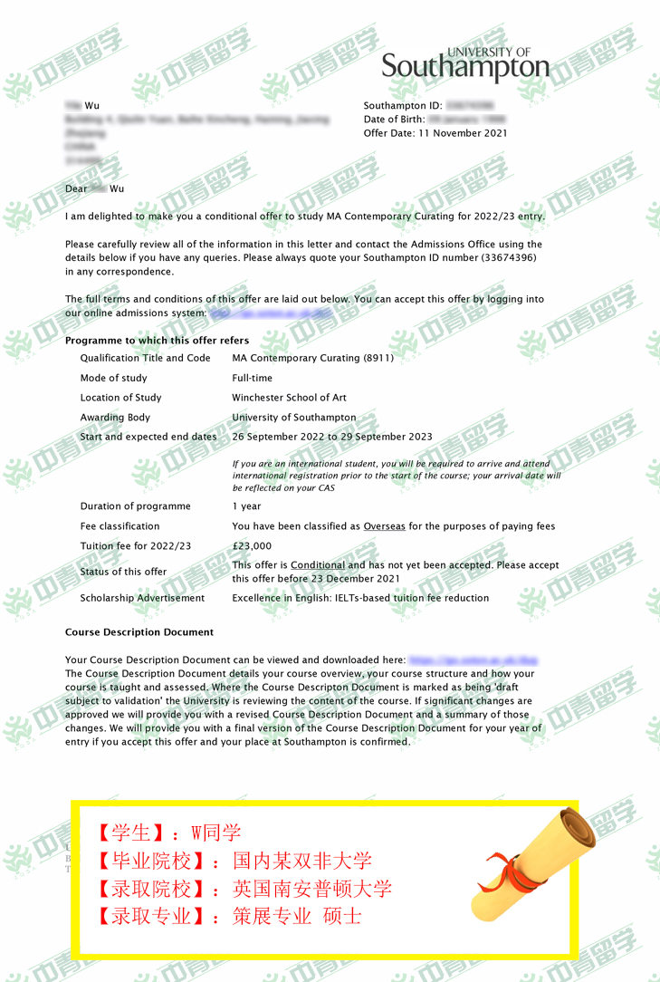【录取院校】:英国南安普顿大学