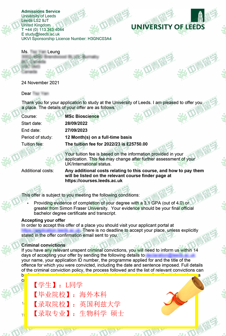 【录取院校】:英国利兹大学