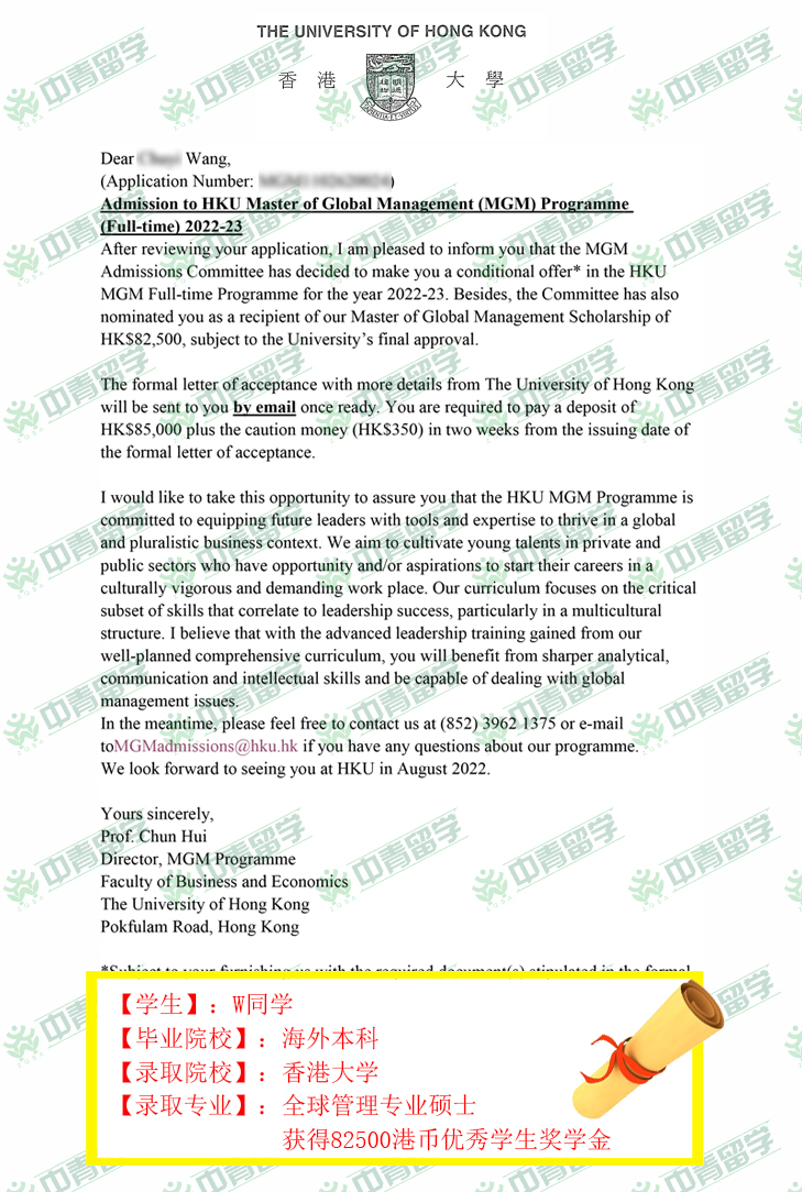 【专业】:全球管理硕士,并获82500港币优秀学生奖学金