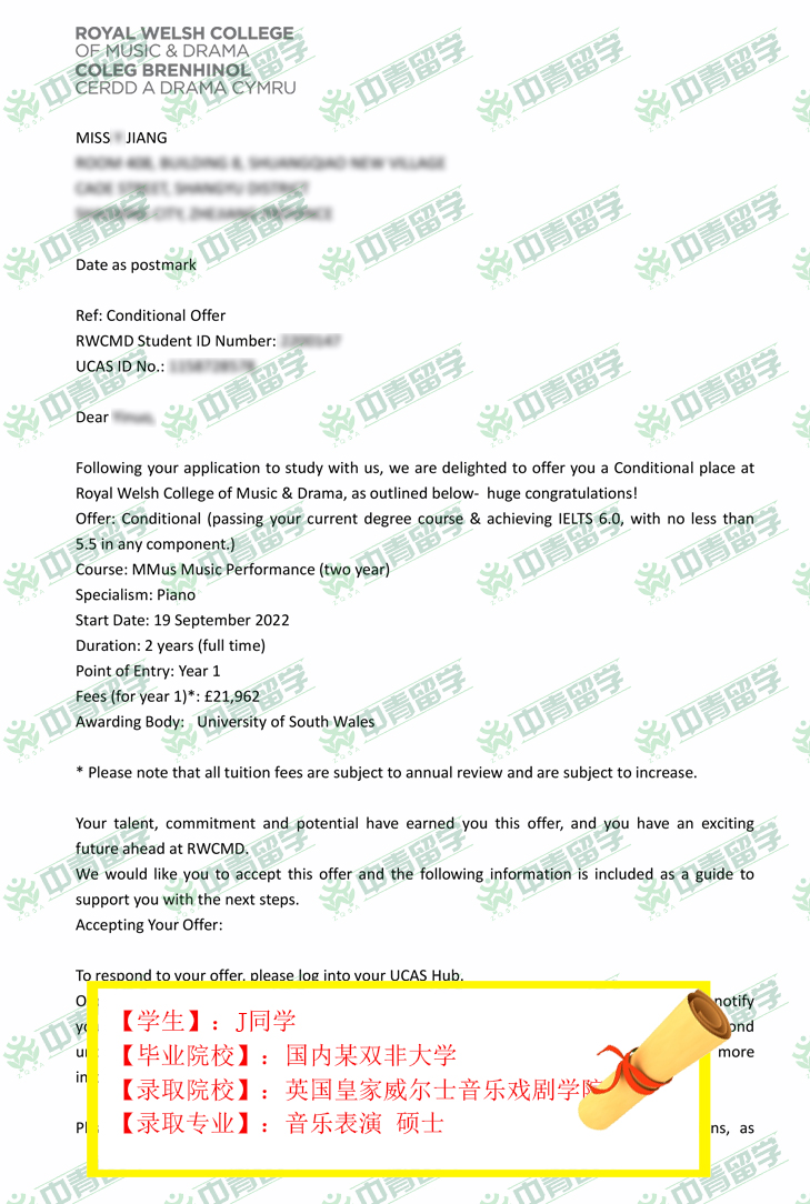 【录取院校】:英国皇家威尔士音乐戏剧学院