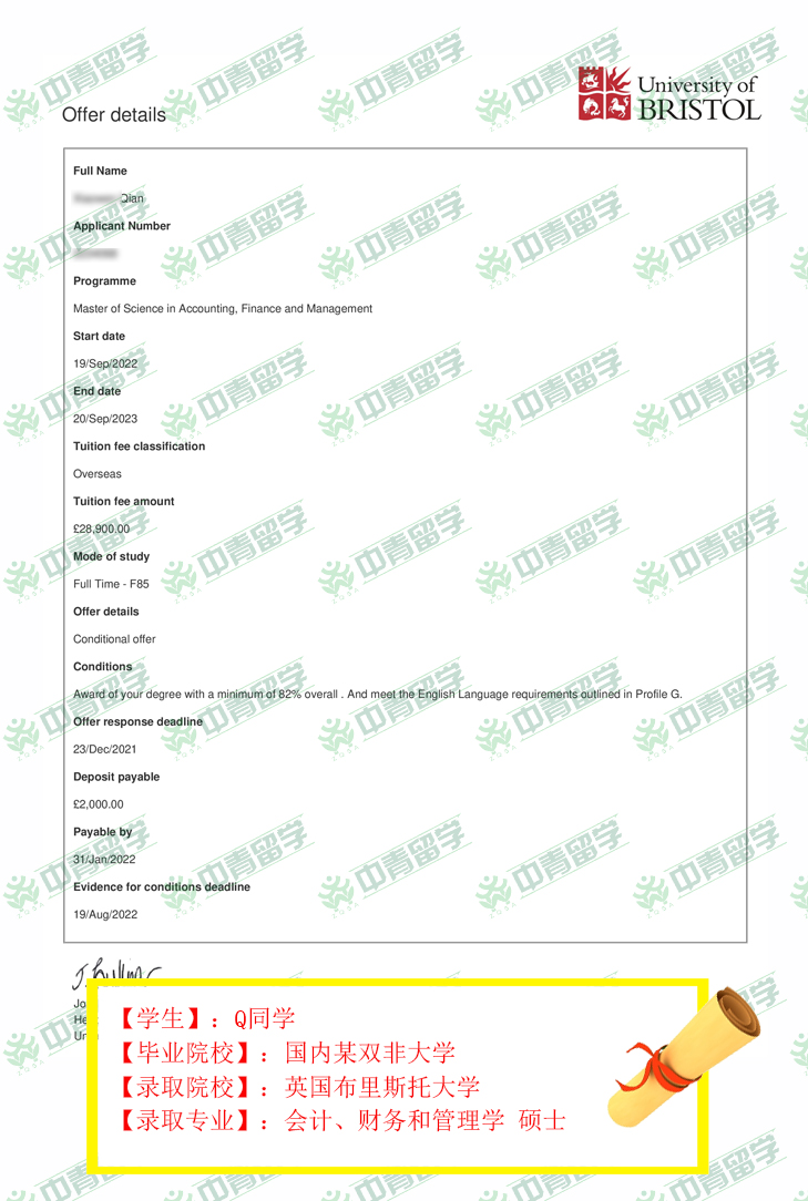 【录取院校】:英国布里斯托大学